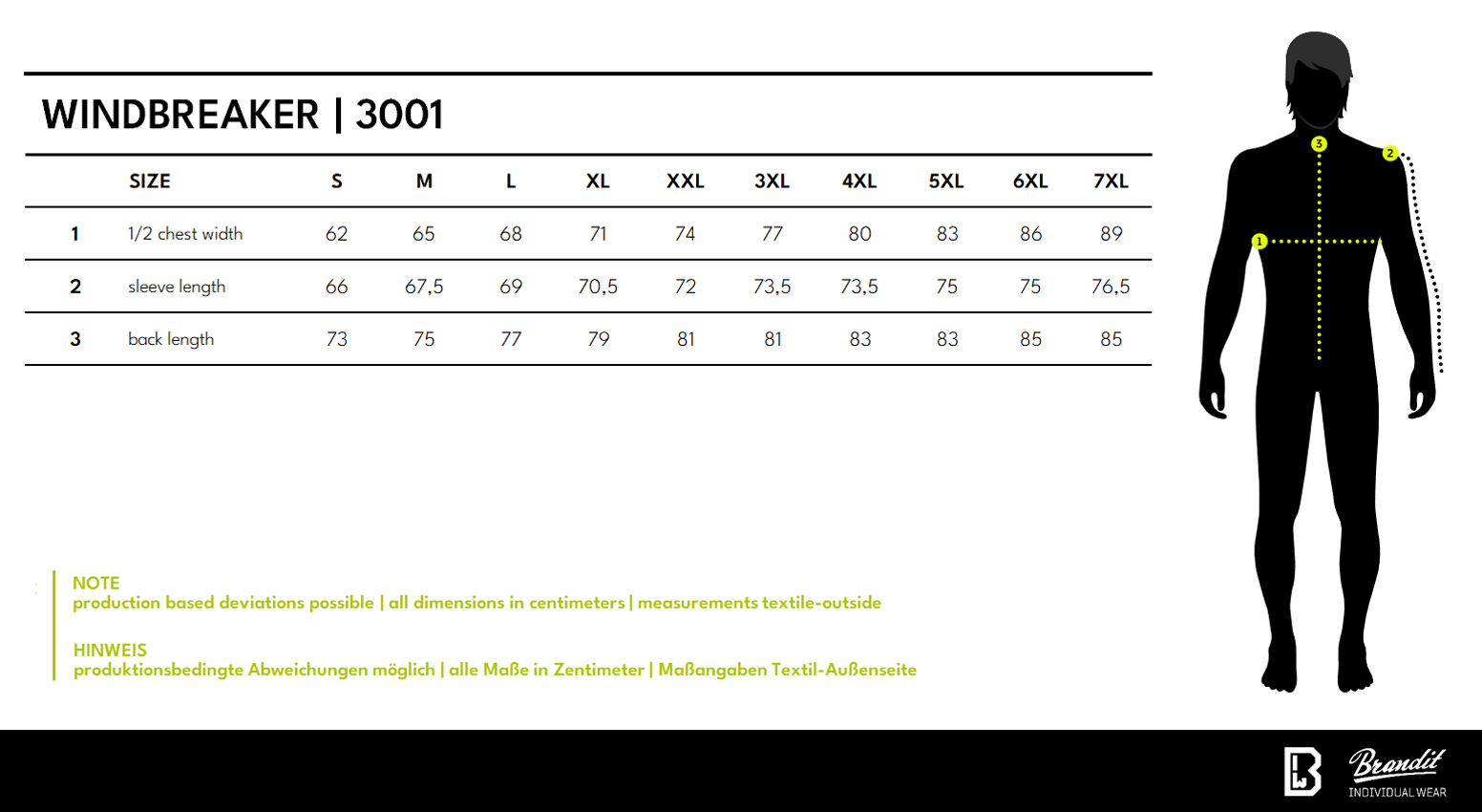 Guida taglie Giacca Windbreaker Woodland - Brandit