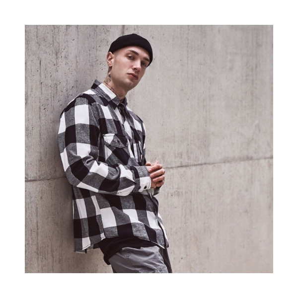 Camicia in flanella da uomo del marchio tedesco Brandit modello Check Shirt dal taglio dritto con tasca sul petto, bottoni frontali, logo sul petto.