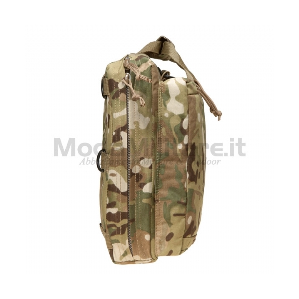 100% nylon, tracolla inclusa, numerose tasche ampie con zip, patch ID in velcro