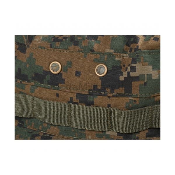 Jungle Boonie Hat di Invader Gear è realizzato in materiale rip-stop, con cordino anticaduta regolabile, sistema MOLLE incorporato e fori di ventilazione.