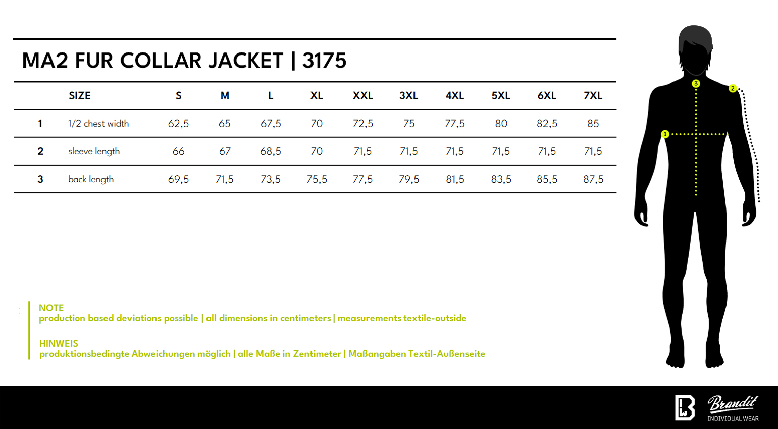 Guida taglie Giacca Pilota MA2 Nera - Brandit