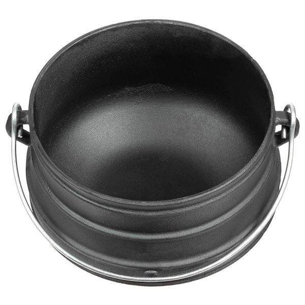 Pentola 5L in ghisa per cucinare, utilizzabile sfruttando diversi combustibili, ideale per il bushcraft o il campeggio. Permette di cucinare direttamente sul fuoco sia su griglia o appesa su treppiedi ma anche sui fornelli classici. Presenta un coperchio in ghisa e un manico in metallo zincato per sollevarla o appenderla sul fuoco.