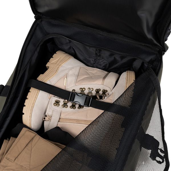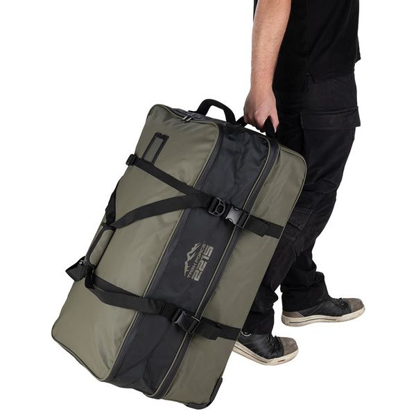Borsa tattica Trolley Commander Pro Waterproof 100L presenta delle cerniere termosaldate impermeabili, un doppio scomparto con cerniera per organizzare attrezzatura e abbigliamento, 3 ruote robuste e fondo rinforzato. Il design risulta comunque leggero, con doppia maniglia e molteplici cinghie per il traporto in diverse modalità.