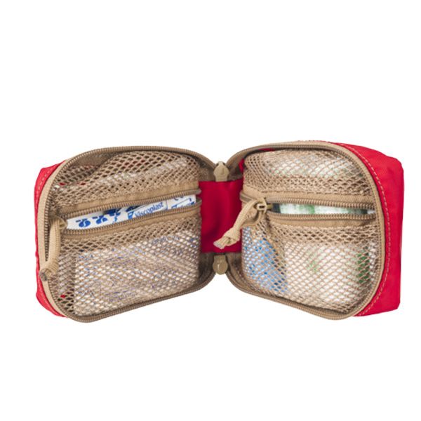 Il pratico Mini Med Kit è una tasca medica da viaggio essenziale che sarà utile a tutti, dagli appassionati di sopravvivenza esperti in spedizione ai bambini in gita scolastica. Come si presenta il Mini Med Kit? È una semplice tasca con due scomparti con cerniera all'interno. Questo permette di riporre tutto il materiale medico necessario come cerotti, bende, perossido di idrogeno o disinfettante.