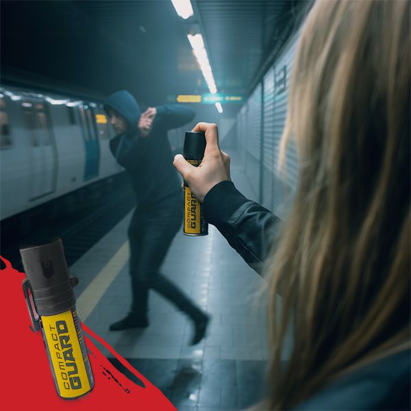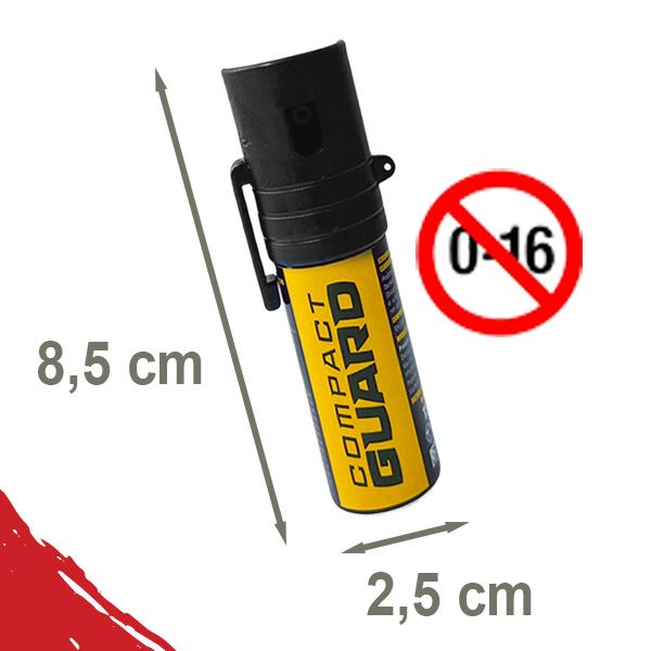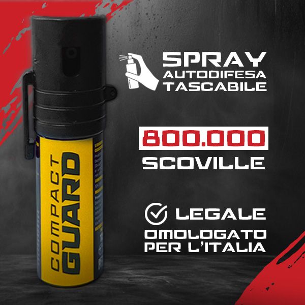 Spray peperoncino Compact Guard 15ml con potenza dichiarata 800K SHU. Dispositivo di autodifesa per uso civile, formato tascabile, getto balistico direzionato e conforme ai limiti previsti dalla normativa italiana.