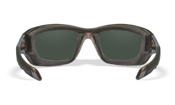 Occhiali Wiley X WX Gravity. Lenti CAPTIVATE™ Polarized Blue Mirror (base grigia) che riducono il riflesso blu, protezione 100% UVA/UVB/Luce Blu (HEV), lenti Selenite™ infrangibili, telaio Nylon Triloid™. Dotati di Facial Cavity™ Seal rimovibile e cinturino elastico T-Peg.