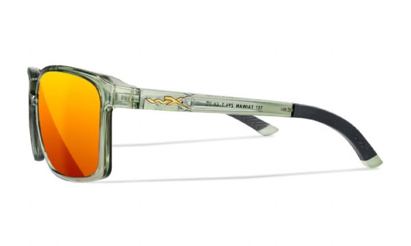 Occhiali Wiley X WX Alfa. Lenti CAPTIVATE™ Polarized Bronze Mirror (base rame), protezione 100% UVA/UVB/Luce Blu (HEV). Design quadrato con aste a baionetta sottili, regolabili e gommate. Lenti Selenite™ infrangibili, telaio Nylon Triloid™, scudi laterali rimovibili.