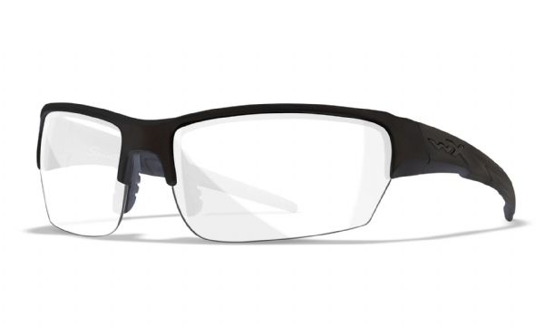 Occhiali Wiley X WX Saint. Design sportivo semi-rimless (semi-cerchiato) con tre lenti intercambiabili (Grigio, Trasparente, Ruggine Chiaro). Ideali per visi più piccoli, offrono protezione 100% UVA/UVB, lenti Selenite™ infrangibili e un fit antiscivolo grazie a naselli e terminali in gomma.
