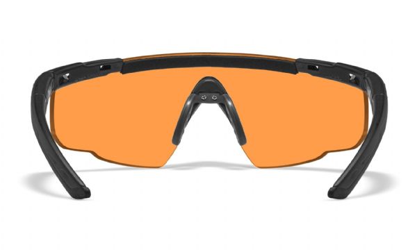 Occhiali tattici Saber Advanced. Design semi-rimless con lente singola Ruggine Chiaro. Ideali per luce media/bassa, aumentano i contrasti filtrando la luce blu. Offrono protezione 100% UVA/UVB, lenti Selenite™ infrangibili. Fit ultra-regolabile grazie alle aste telescopiche e al nasello 360°.