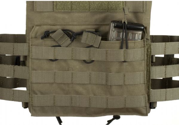 • Tripla Porta Caricatori Integrata: Un pouch integrato nella sezione inferiore frontale del carrier per l'alloggiamento di tre caricatori.