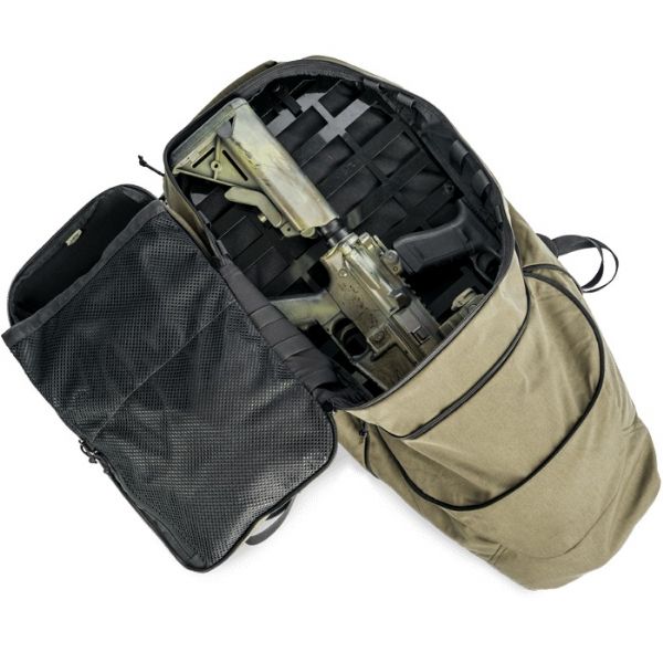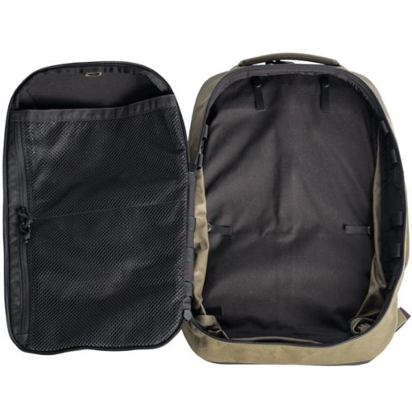 • Modularità Interna: Le pareti interne presentano fettucce PALS per l'attacco di tasche e attrezzature, supportate dall'inserto modulare EXP™ PACK MOLLE INSERT (venduto separatamente). È presente anche un divisore interno in mesh tra lo scomparto principale e quello frontale.