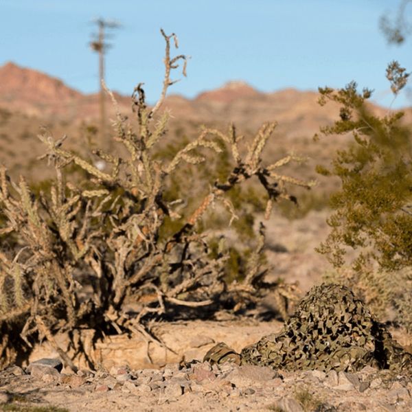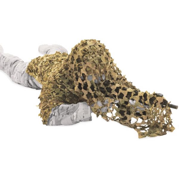 • Trasportabilità: Il ghillie si ripiega e si ripone nella sua custodia (stuff sack), che ha le dimensioni di una palla da baseball per uno stoccaggio compatto. Questa custodia può essere montata su sistemi MOLLE o su una cintura.