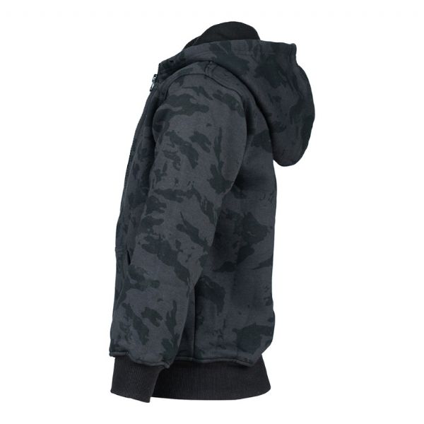 Il design include un cappuccio per una maggiore protezione e due tasche laterali pratiche per riporre piccoli oggetti o tenere le mani al caldo. I bordi delle maniche e l'orlo inferiore della felpa sono elasticizzati, garantendo una vestibilità aderente al corpo che aiuta a trattenere il calore e assicura una buona libertà di movimento.