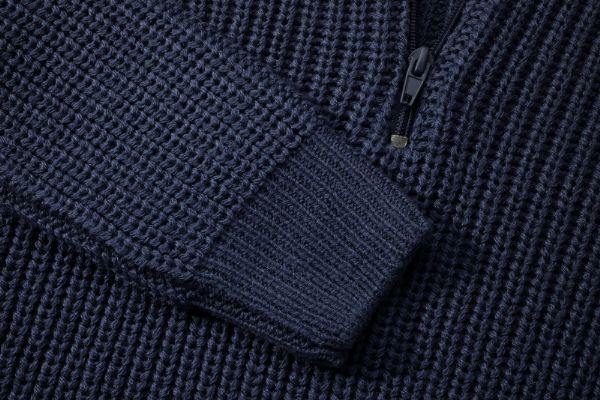Un elemento distintivo è il colletto, alto e spesso, che offre maggiore protezione dal freddo. La chiusura del colletto è regolabile tramite una pratica cerniera. Per migliorare l'isolamento e l'aderenza, sia i polsini che l'orlo inferiore del pullover sono rifiniti con un bordo lavorato a maglia.