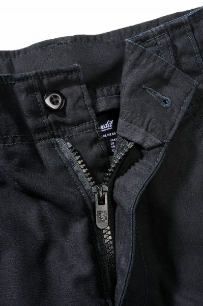 Pantaloni cargo funzionali Pure Vintage Brandit per bambino, realizzati in robusto e confortevole 100% cotone. Vita regolabile con elastico perforato (60% elastodiene, 40% poliestere), chiusura con cerniera di alta qualità e robusti passanti per cintura.