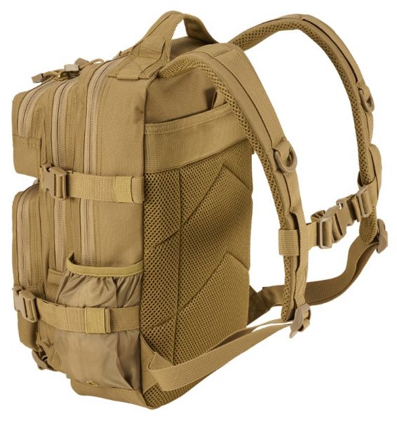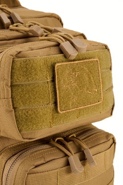 • Dettagli: Cerniere rovesciate, passanti MOLLE, area per patch a strappo (patch aquila inclusa), moschettone incluso, anello a D per attacchi, cinghie di compressione laterali