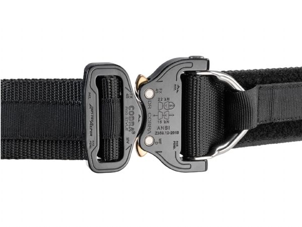 La Cintura Tattica Defcon 5 Low Profile è progettata per un uso intensivo, dotata di fibbia Austrialpin anodizzata nera, conforme agli standard ANSI/ASSP Z359.12-2019 e CSA Z259.12-2016. Questa cintura è ideale per attività militari e outdoor, grazie al suo sistema MOLLE esterno che consente l'aggiunta di accessori.
