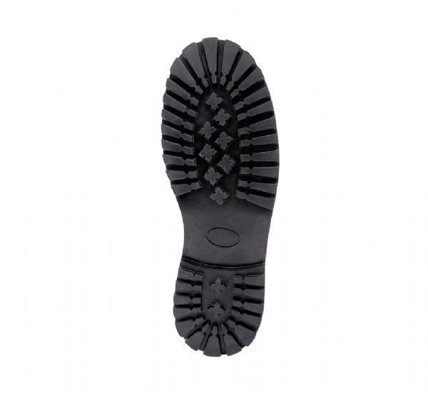 Uno degli elementi tecnici più rilevanti è la suola platform in gomma, che presenta un profilo a carrarmato per un grip eccellente. La suola è fissata alla tomaia tramite un sistema combinato di incollaggio e cucitura, che ne aumenta drasticamente la resistenza strutturale. La sicurezza del piede è completata dalla punta rinforzata in acciaio (steel toe cap), progettata per proteggere le dita da urti, cadute di oggetti o compressioni accidentali.
