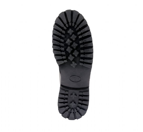 Sotto il profilo tecnico, la suola platform in gomma è caratterizzata da un profilo a carrarmato profondo per un grip ottimale. La sicurezza è garantita dal metodo di fissaggio della suola, che viene sia incollata che cucita, eliminando il rischio di distacchi. La punta è dotata di un inserto di rinforzo in acciaio (steel toe cap), elemento indispensabile per la protezione delle dita contro urti violenti e schiacciamenti.