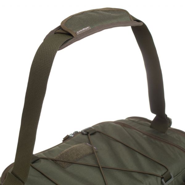 Borsone Stork 50L Olive Green di Wisport, realizzato in robusta Cordura, pannelli PALS per modularità, con tasche interne ed esterne, cinghia staccabile e pannello ID per etichette. Perfetto per trasporto, viaggio e uso tattico.