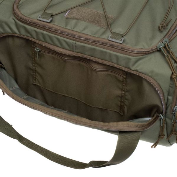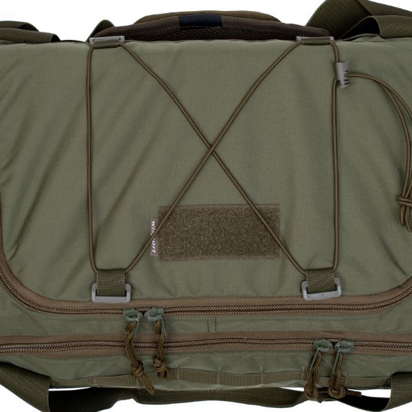 Il borsone Stork è costruito in materiale Cordura ad alta resistenza all’abrasione e all’usura, con pannelli PALS lungo le superfici esterne che consentono di aggiungere tasche modulari e accessori secondo necessità operative. La cinghia di trasporto è staccabile e regolabile per portare il borsone a spalla o a mano con gli appositi manici rinforzati. La chiusura principale è assicurata da zip a spirale robuste con due cursori per apertura/destra più veloce. Sulla parte superiore è presente un pannello in velcro per l’attacco di patch identificative o morale patch, utile in contesti tattici e professionali.