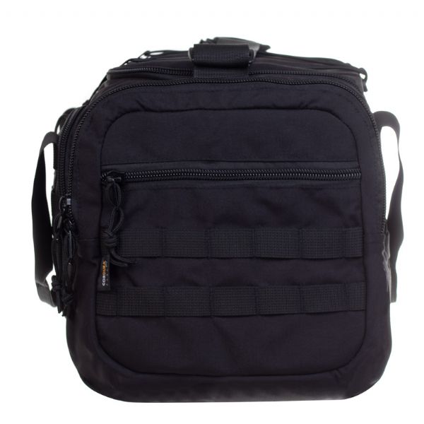 Il borsone Stork è costruito in materiale Cordura ad alta resistenza all’abrasione e all’usura, con pannelli PALS lungo le superfici esterne che consentono di aggiungere tasche modulari e accessori secondo necessità operative. La cinghia di trasporto è staccabile e regolabile per portare il borsone a spalla o a mano con gli appositi manici rinforzati. La chiusura principale è assicurata da zip a spirale robuste con due cursori per apertura/destra più veloce. Sulla parte superiore è presente un pannello in velcro per l’attacco di patch identificative o morale patch, utile in contesti tattici e professionali.