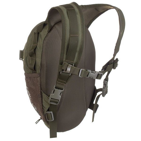 Zaino tattico Wisport Sparrow EGG 10 Olive Green realizzato in Cordura 500D da 10L, con tasche interne ed esterne, compatibilità con sistema di idratazione, pannello in Velcro, cinturino pettorale rimovibile e spallacci sagomati per un comfort adeguato e una corretta gestione dei carichi leggeri.