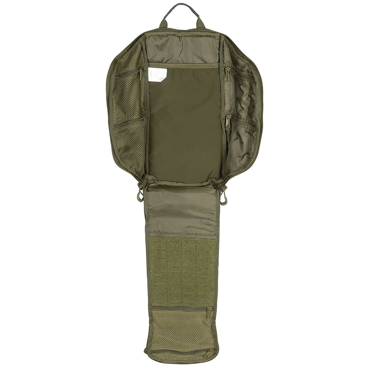 Zaino modulare 13 L OD Green MFH con sistema MOLLE laser cut, spallacci imbottiti e scomparti organizzati. Ideale per attività outdoor, uso tattico e urbano con struttura leggera e resistente.