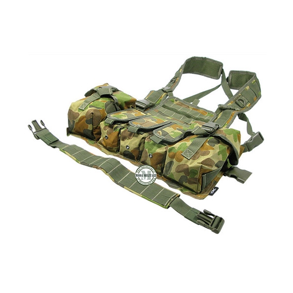Il Chest Rig Tyr Auscam BE-X comprende: 2 tasche utillity. 3 porta caricatori, 6x G36/AUG/AK 6x o 9x M4/M16/SA80 1 tasca interna con chiusura a zip. 3 tasche sul retro. Loops per fili di idratazione. Traspirante e spallacci imbottiti. Sistema MOLLE frontale